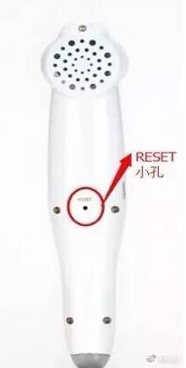 注:复位键小孔(reset)根据点读笔的型号不同有些在前面有些在后面,详见手中的点读笔!