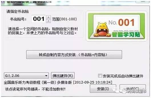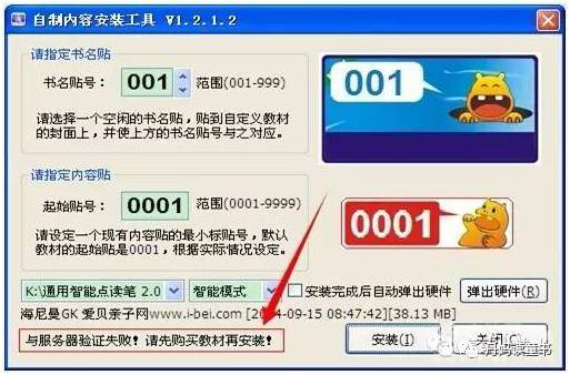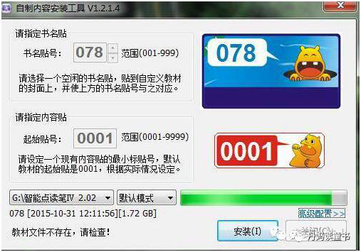 2.安装点读包时,选择书名贴或内容贴编号是否按照点读包安装说明的要求填写。