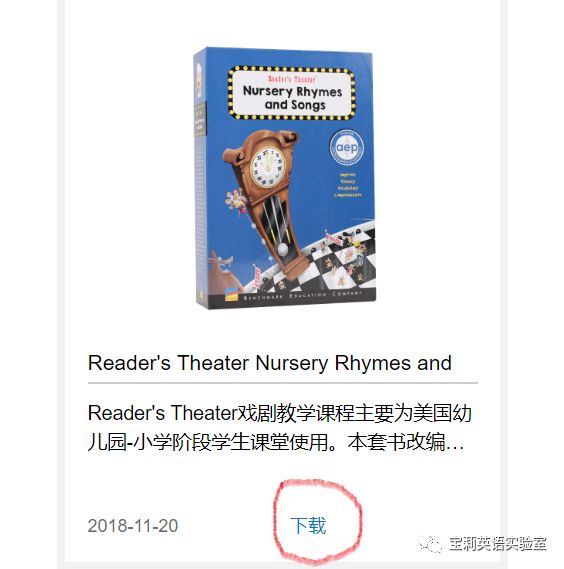 进入后点击“英语启蒙童谣系列”,下拉找到Reader's Theater戏剧教学课程,点击下载。