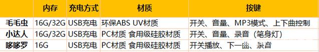 按键相对毛毛虫更少,更简明操作。也有耳机孔,理由同毛毛虫。我最喜欢的是挂绳设计,可以让宝宝挂在脖子上,能很大程度避免摔打和丢失,毕竟一支笔好几百,咱也不是大户人家。