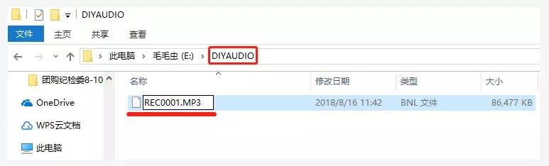 ②通过USB数据线,将其从电脑端存入点读笔“DIYAUDIO”文件夹中,再将文件名更改为点读贴序号即可: