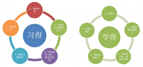 1、习得是潜意识的自然获得,学的是有意识的学习