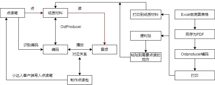 (oidproducer能直接生成点读包,但其格式与小达人点读笔不兼容,因此只能用其铺码,此时无需直接关联音频文件,最后还必须用小达人的客户端制做点读包)