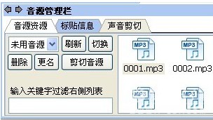 有些书的声音是整本书的声音,或者一段mp3是一个单元的声音。如果我们想点一句就读一句的话,一定要经过音源剪切。选择左下角的未用音源,这是我们导入的音源,选择一个,然后点剪切音源。(对一些比较长的音频,可以先用 Mp3ABCut 来粗分一下,然后再用 GoldWave 做进一步的细分。)
