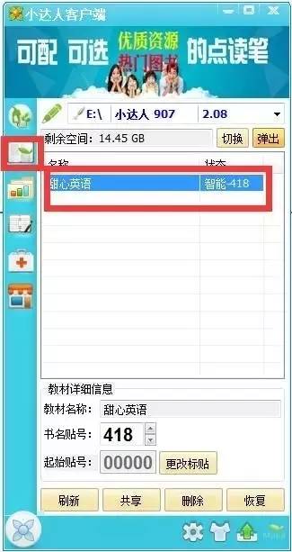 4.双击小达人客户端,点击内容管理,刷新可以看到点读笔已成功安装;