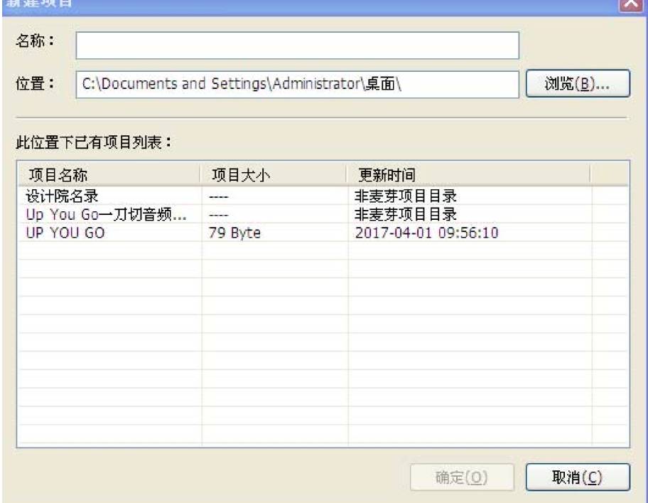 4. 在新建项目里,输入项目名称、选择好位置后点击确定