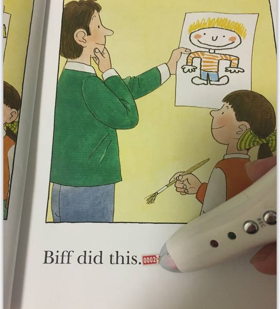 6.点读笔开机,先点击甜心外语书本的封面,识别教材后,就可以正常点读书本内容。小达人点读笔使用攻略与指南。