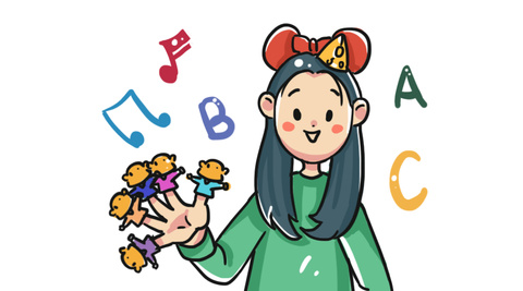 也可以使用儿歌,小孩听多了就会自己唱。父母可以使用配套的动作来解释歌词的意思,尽量避免直接中文翻译。
