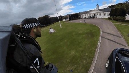 除了上面说的打击海盗,警察抓匪徒时穿着喷气装置,这简直是老鹰捉小鸡一样降维打击。