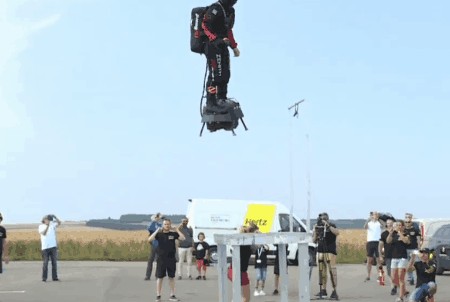 前几年有位法国人做出了一个飞行滑板,只用22 分钟就横跨了 35 公里的英吉利海峡。
