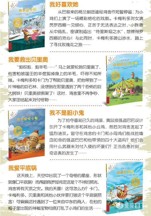 整个故事内容极具创意,充满想象色彩,插图精美,小鸡卡梅拉和卡梅利多的形象惹人喜爱。