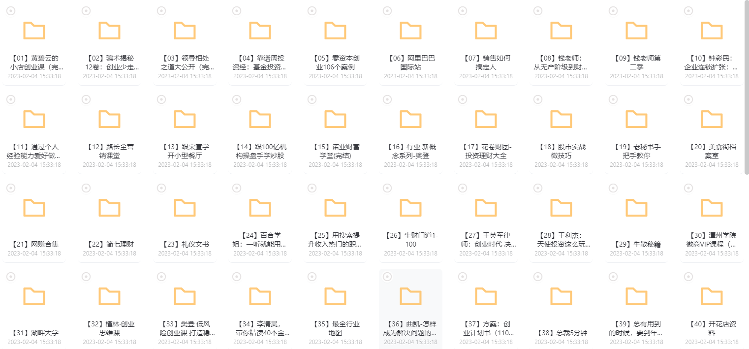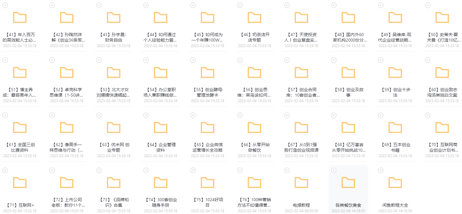 求生技巧:最新整理创业课程资料大合集,包含品牌知识合集、创业项目、金融理财、网赚合集、行业地图、创业书籍、微商课程资料全套等等