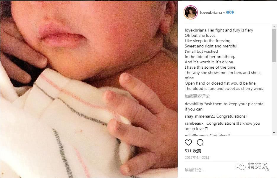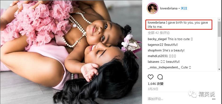 而在Briana Williams社交账号上,这位来自洛杉矶的母亲对女儿写道:“艾芙琳(Briana Williams女儿名),他们说因为有了你,我做不到。可要是没有你,我做不到!”