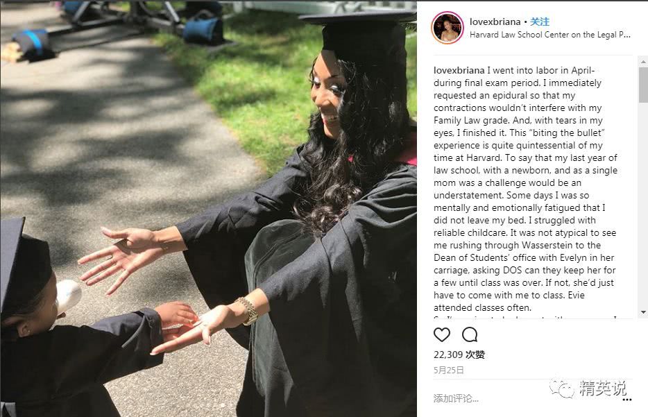 人们惊叹,这么一位年轻女性是如何同时完成两项艰巨的任务:既做到一个人照顾孩子,又顺利拿下哈佛法学院的学位?
