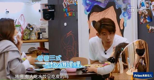贾静雯照顾两个女儿吃饭,几乎都是素颜出镜,完全不在意自己的形象。