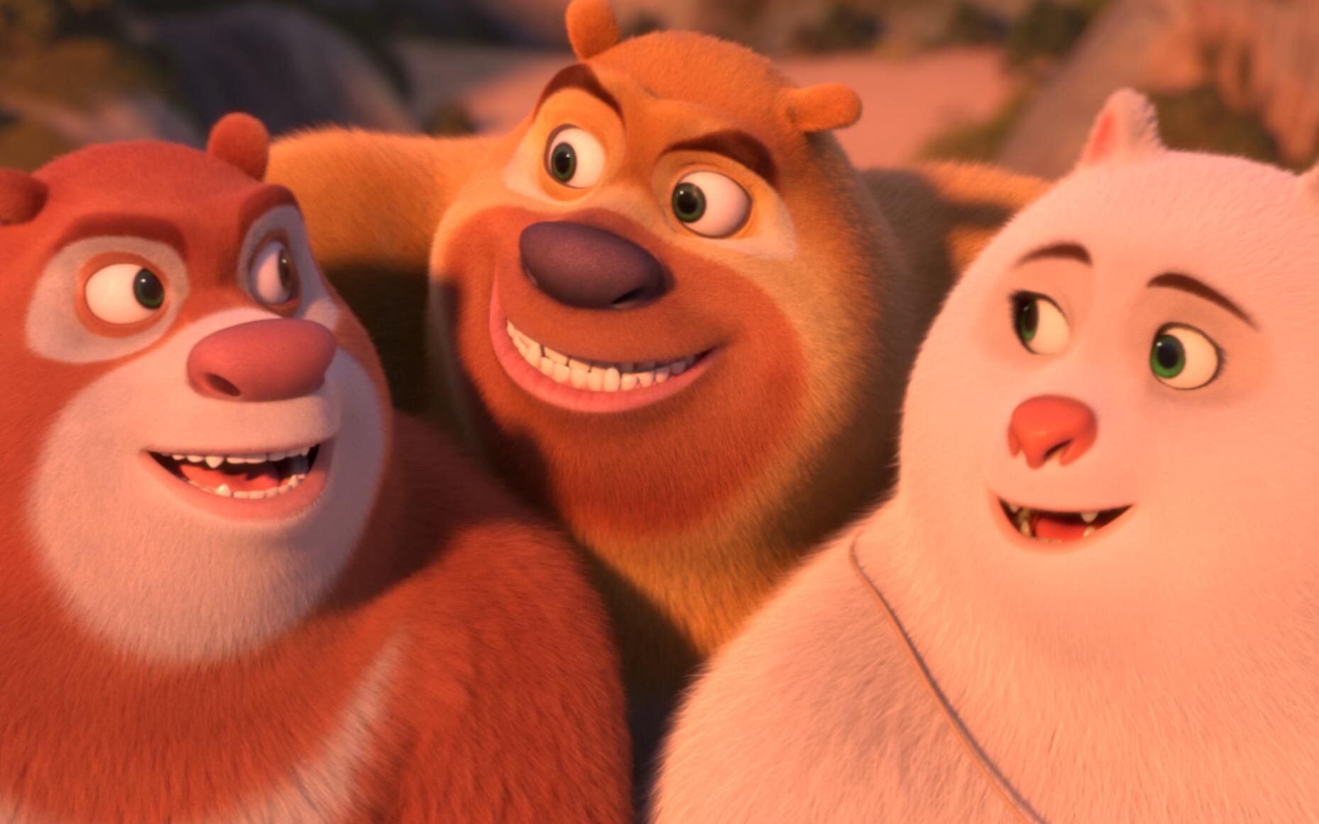 该片的低幼特征还体现在画风的简洁、明快与鲜亮上。尽管特效制作的动物角色在毛发上纤毫毕现,重要故事场景的画面渲染也足够细腻、下足本钱,但熊大、熊二与熊妈妈的面部表情,拟人化得更明显;人物角色也不在面部建模上面下过多的无谓功,放弃掉了对角色造型和表情动态一定要“酷似真人”的追求,删繁就简,适应情节需要即可。主观上或许是出于节省制作经费的目的,效果上则避免了画面信息强度过大而可能给观众带来的不适感与压迫感。影片中即使有部分场景以暗色调为主,也避免出现好莱坞动画电影的青少年化和成人化趋势,不强调空间的幽深感,也不以一惊一乍的音效烘托紧张氛围。该片是一部对儿童观众极为友好的电影,甚至可能是春节档期所有电影里最童叟“无害”的一部。