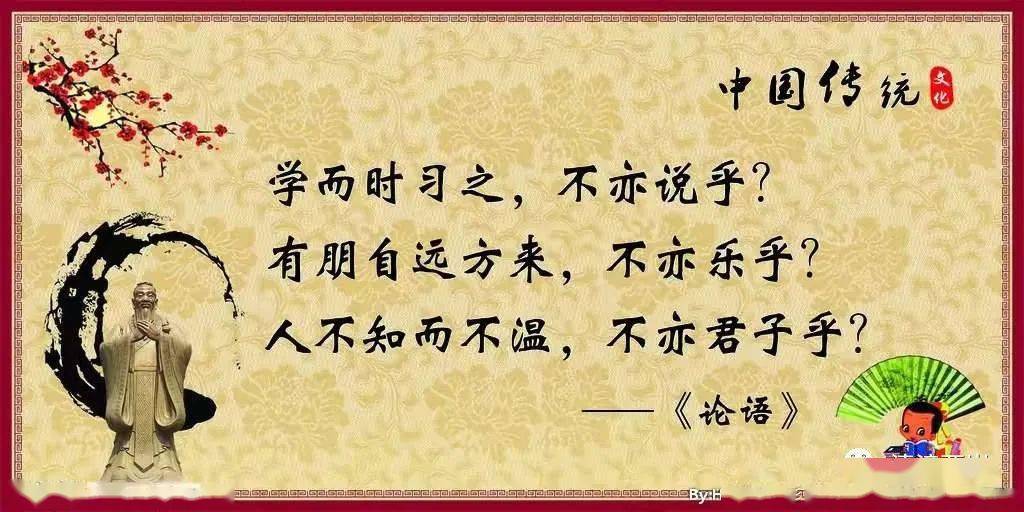 孔子说:"学了,然后按一定的时间去实习它,不也高兴吗?有志同道合的人从远处来,不也快乐吗?人家不了解我,我却不怨恨,不也是君子吗?" [3]