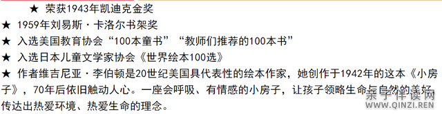 伯顿凭借《小房子》获得了凯迪克金奖。在获奖感言中他谈到了自己的创作诀窍,很简单的一句话,就是“平等对待孩子,不要低估了他们,同时要注重细节的设计,无论多小的部分,都要能与整体融为一体”。