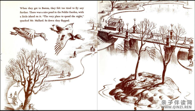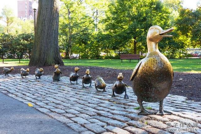 你知道美国波士顿人有多爱罗伯特的这本《让路给小鸭子》。1987年,人们专门在波士顿的公共花园安放了鸭妈妈和鸭宝宝的雕像,让鸭子一家永久的陪伴波士顿人。