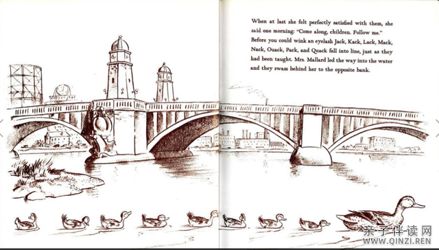 而《让路给小鸭子》是他在波士顿公园看到了鸭子一家后产生的灵感。而且他为了把鸭子画得形象生动,不仅去动物园看鸭子,去博物馆图书馆查资料,还专门买回来几只小鸭子养在家里,每天仔细观察他们走路和游泳的姿态,正因为如此《让路给小鸭子》画的非常真实生动。所以这本绘本一面世,就受到了大小读者们的疯狂追捧。