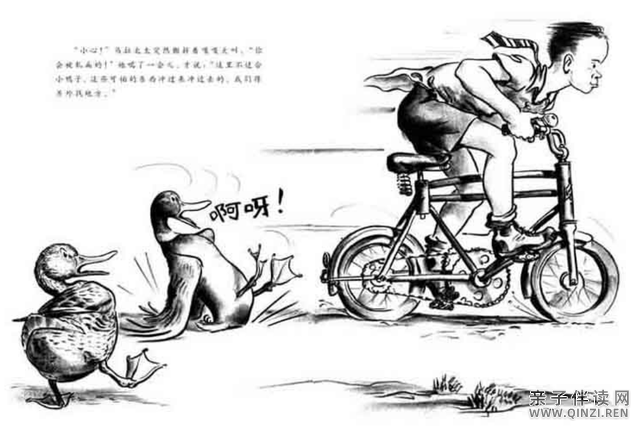 你还可以这样问孩子,你是想做那个横冲直撞骑车子的人呢,还是做主动给鸭子让路的人呢?