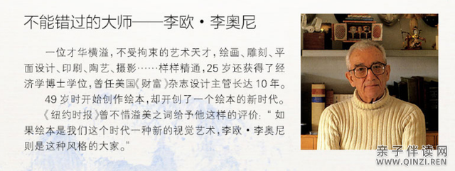 媒体曾给予他这样的评价,“如果绘本是给我们这个时代一种新的视觉艺术,李欧·李奥尼则是这种风格的大家。”