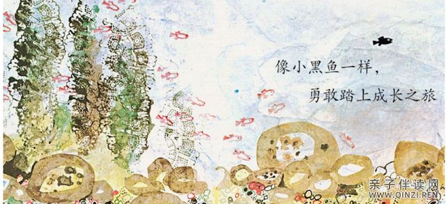最后我想说的是,不知道你发现没有,故事中的小黑鱼也不是一开始就会思考,他是逃离那小小的海草丛,一路上看到更广阔的海洋世界,是这些经历让他成长,学会了思考。