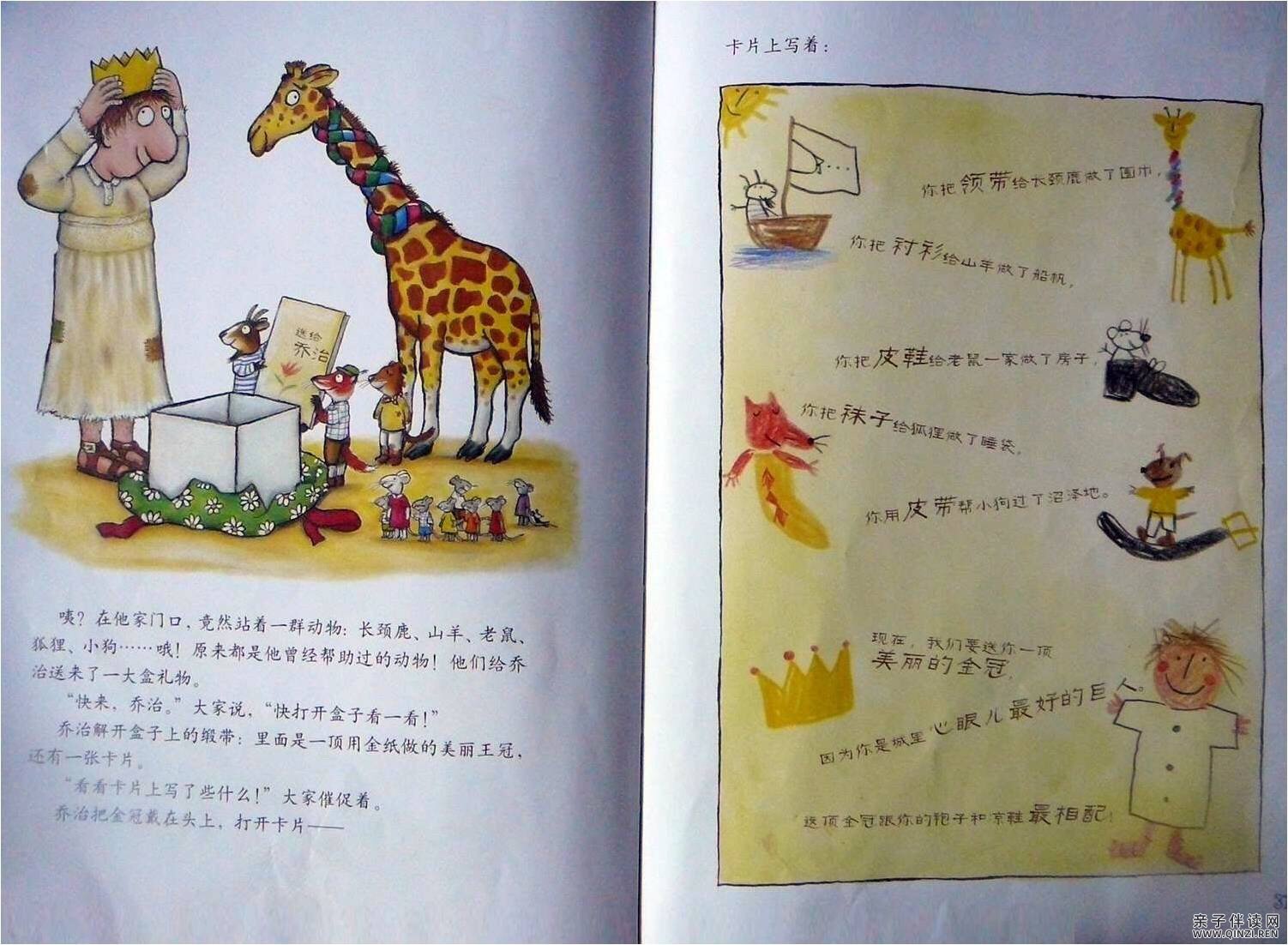 每次拿起这本书都被故事中的人物“巨人乔治”所深深的感动着。最后以“金冠”结束,乐于助人的人必然受到人们的喜爱。文章很简短,故事很易懂。