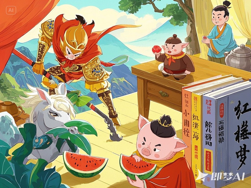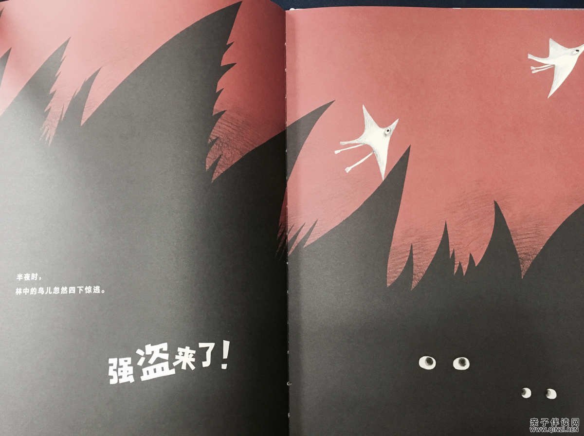 三个强盗转身气哼哼地扑向小孩,一把抓过他的小背包。