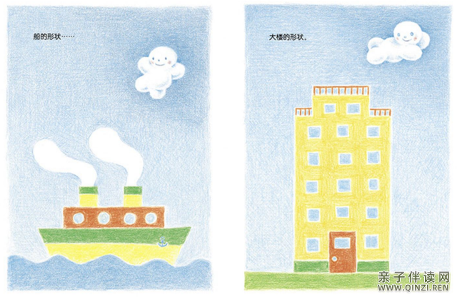 比如听完绘本故事之后,你可以问孩子,“开始的时候云娃娃为什么不开心了呢?”你可能会想,这不是故事里都讲了,因为云娃娃看见其他物体都有形状,而自己没有。但是对于几岁的孩子来说,他只觉得这是个故事,并不会去思考故事背后是什么。