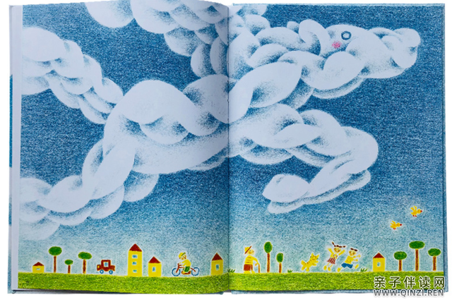 晴朗的天气里,抬起头,望着天上的云,天马行空的想象,这朵像恐龙,那朵像飞机,那边那朵好像一对兔子耳朵,这样的经历小时候大家一定都有过吧,这个几乎人人都有的体验,被日本绘本大师尹东宽创作成了《云娃娃》的故事。不过《云娃娃》描写的不是人对云的观察,而是云对万物的观察。