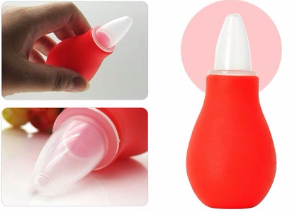 吸之前,先捏紧吸鼻器下端的圆球排出空气,然后再将吸头放进宝宝的鼻子里,手慢慢松开,鼻涕就被吸出来了。