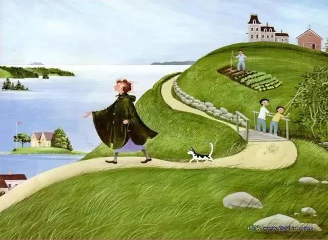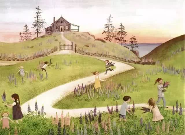 原野上、上坡上开满了蓝色的、紫色的和粉红色的鲁冰花,它们沿着公路和乡间小路盛开着,明亮的点缀在教室和教堂后面,连空地上和高高的石墙下面,也都开满了美丽的鲁冰花......她终于完成了答应爷爷的第三件事。