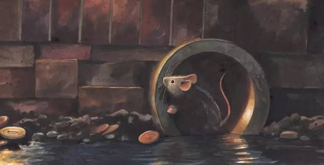 小老鼠幸运地逃进了下水道。那里漆黑一片,静谧无声……