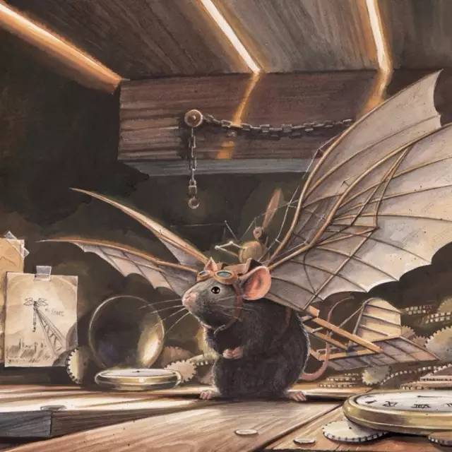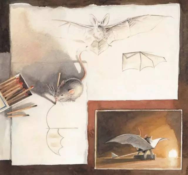 也许是受到了那些会飞的家伙的启发,小老鼠突然有主意了,他也要学会飞翔!