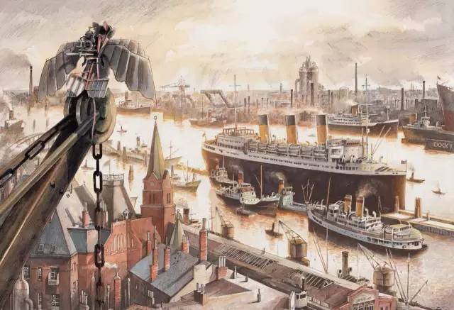 一个装满了水的锅炉制造着蒸汽,泵推动着齿轮转动,最后旋转起来的则是螺旋桨。