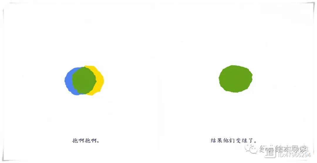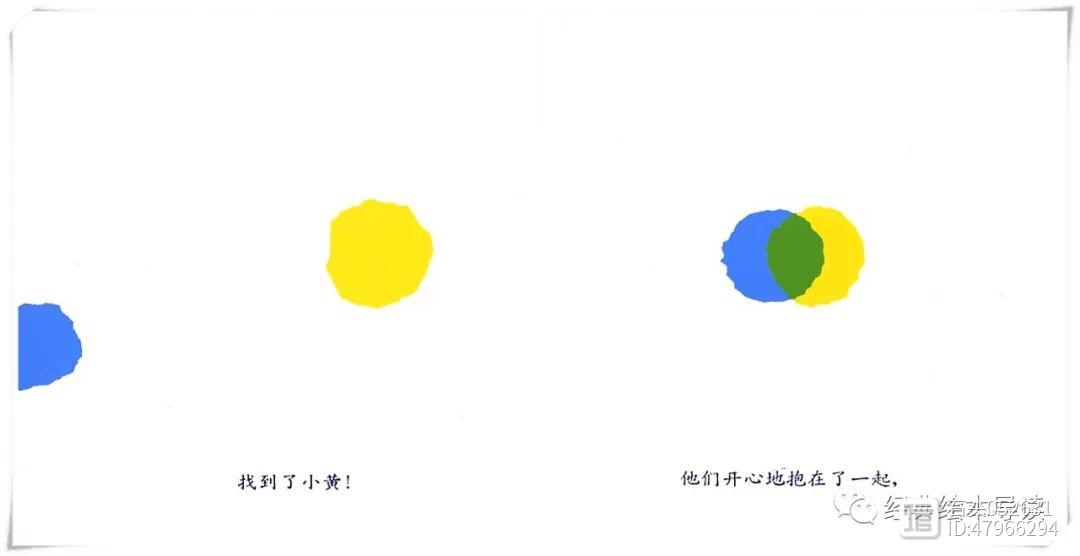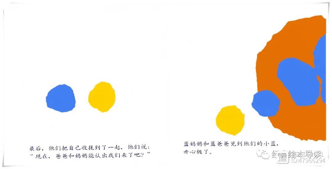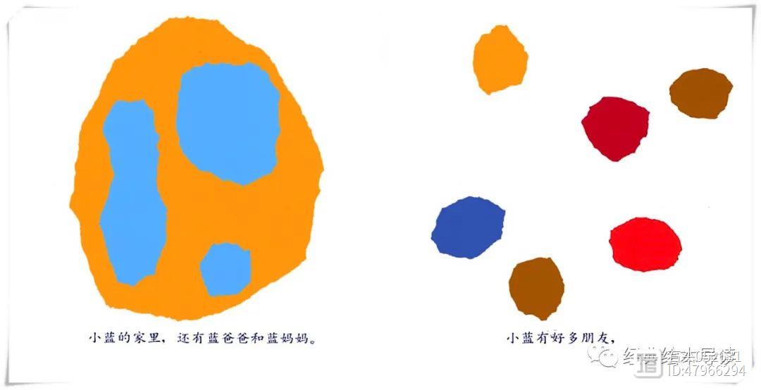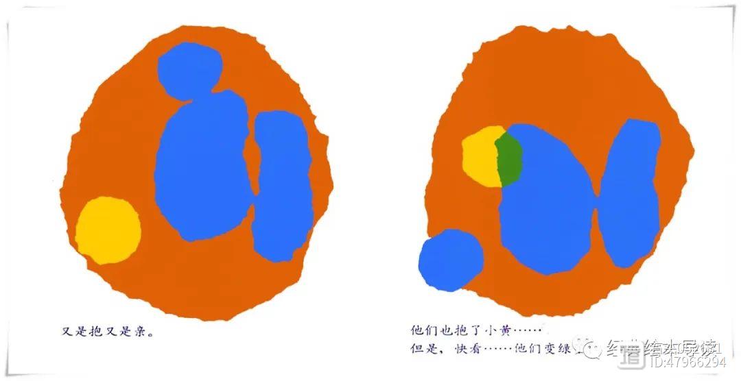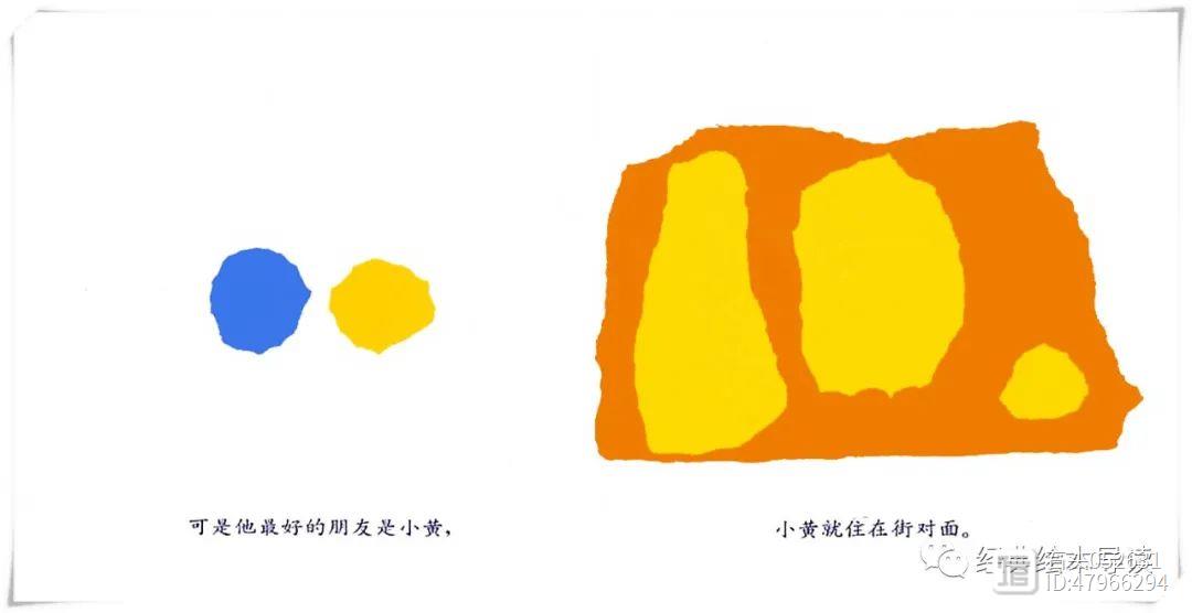1、《小蓝和小黄》就是一本可以用来进行艺术启蒙的绝佳图画书,我们可以这样来跟孩子玩: