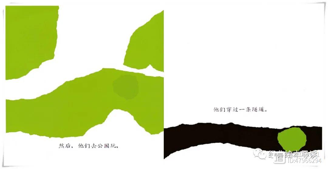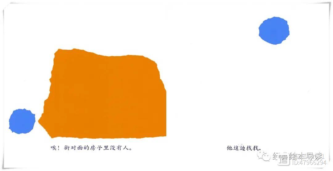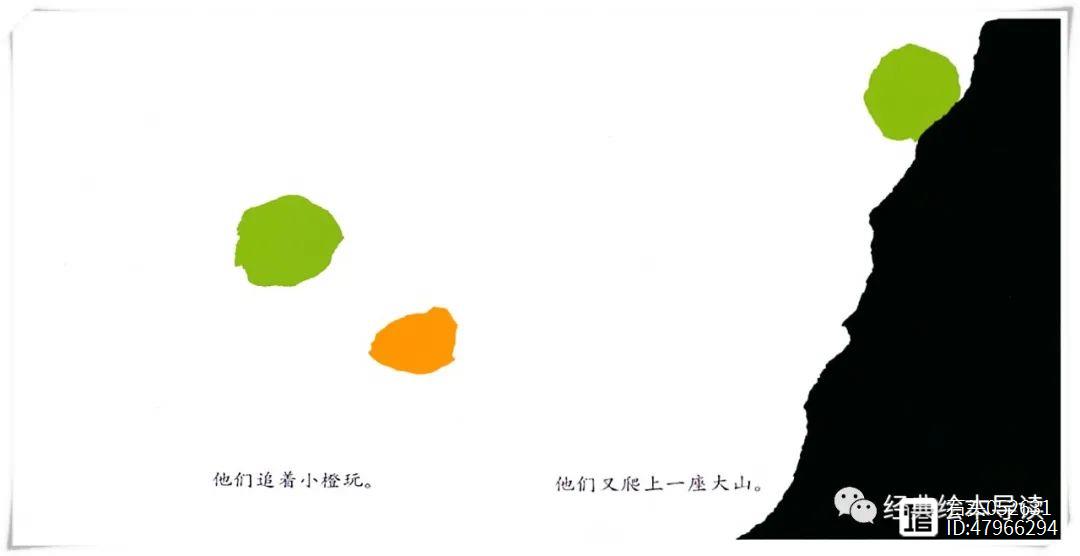 右图中有两个褐色的色块,颜色相同,但形状不同。这表示了什么?或许是双胞胎,或许穿同样的衣服,或许他们的肤色相同。这给孩子们带来更多的想象空间。