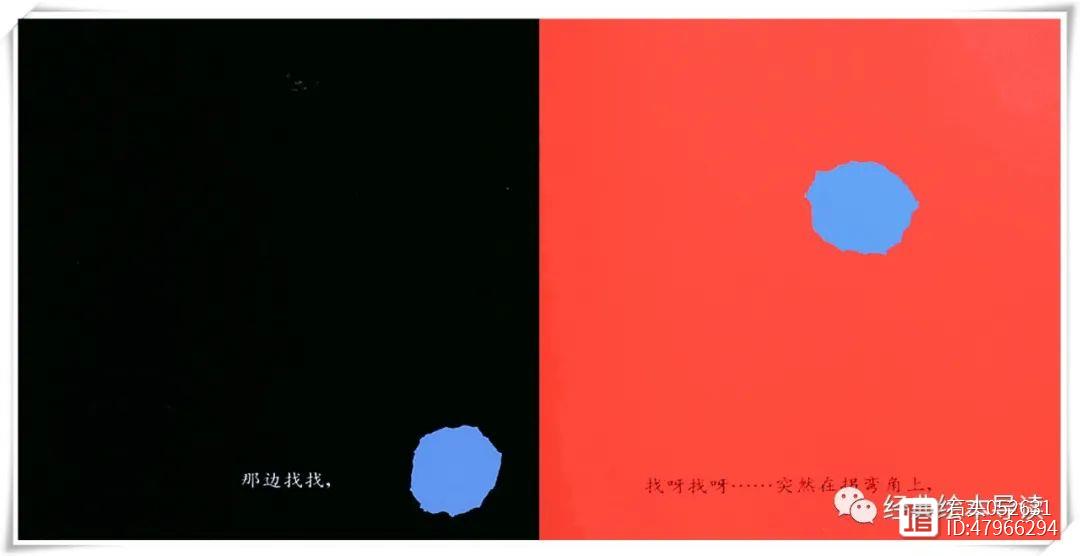 这几个圆纸片,形态非常生动,可以想象出他们躲藏的表情,特别是在黑色里的红色圆片。相信这是很多小朋友喜欢玩的游戏吧,非常有带入感。
