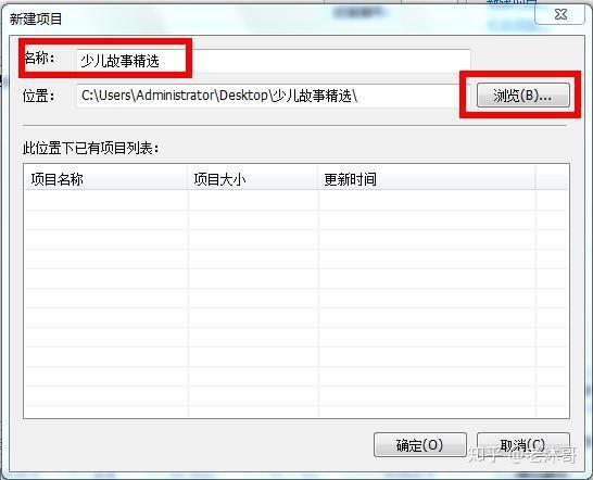 ❍4. 在新建项目里,输入项目名称、选择好位置后点击确定