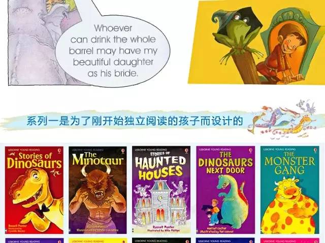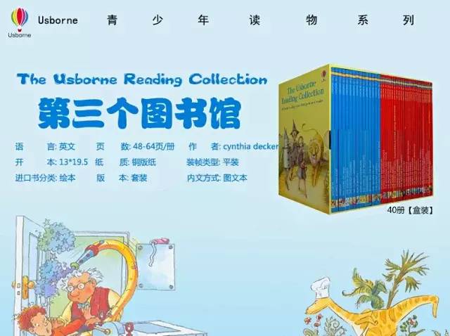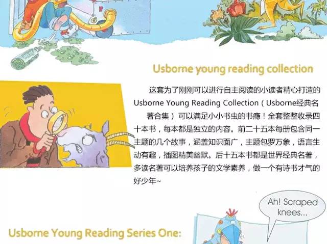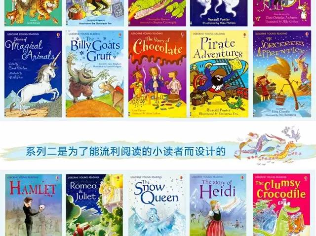 Usborne Young Reading Collection这套为了刚刚可以进行自主阅读的小读者精心打造的Usborne Young Reading Collection(Usborne 经典名著合集)绝对可以满足小小书虫的书隐!The Usborne Reading Collectin 全套收录40本书,每本都是独立的内容。前25本收集Young Reading Series One,部份包含同一主题的几个故事,精美插图,简单易明。后15本书都是一些世界经典名著,篇幅较长,适合能自主阅读的孩子。