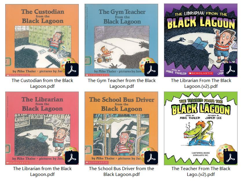 “黑湖探险系列 Black Lagoon Adventures”是Mike Thaler最受好评的作品,这个系列既又适合学龄前儿童的绘本“Black Lagoon Picture Books”,也有适合刚刚进入阅读阶段孩子的桥梁书“Black Lagoon Chapter Books”。