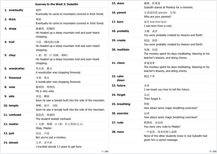 然后还准备了每章节的词汇表,共266页,帮助孩子提高词汇量;