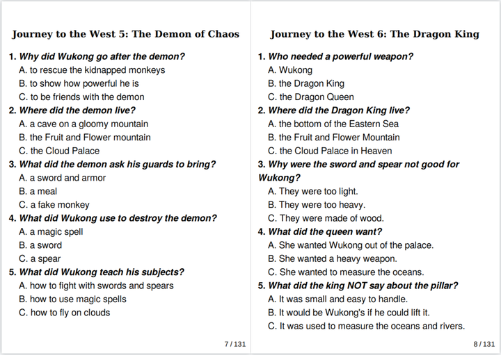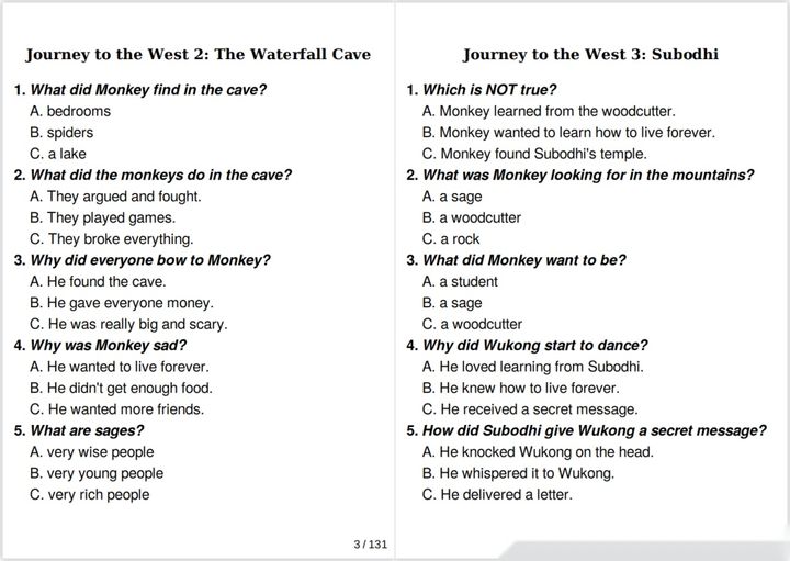 最后是一份131页的Quiz,高清可打印,帮助孩子自我检测,巩固故事内容。