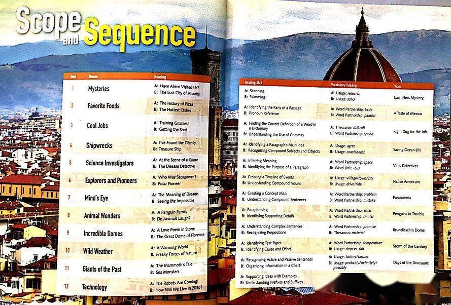 Reading Explorer-此套教材在系统的阅读技巧与批判性思维的揉合上非常赞,打开任何一个级别的目录,都会看到:
