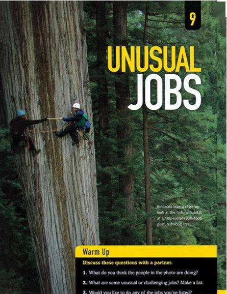 比如以Level 1 第9单元B篇为例,这一单元的主体是关于“ Unusual Jobs”即“不同寻常的职业”。