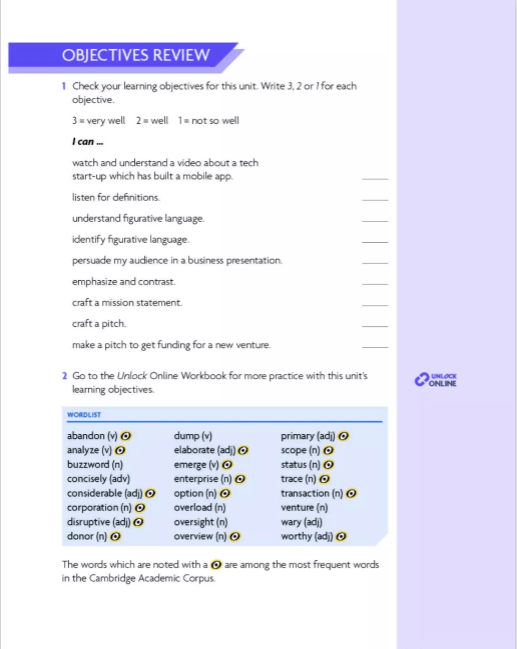 了解了CEFR和剑桥五级考试,下面我们来看Unlock和剑桥五级考试的对应关系: