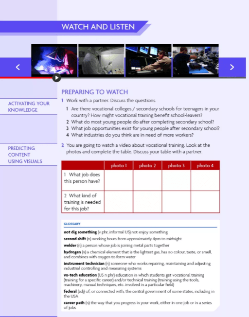 每个单元最后一部分是视频,视频一般在四分钟左右。视频会比普通阅读难一点,毕竟还有听力的训练。