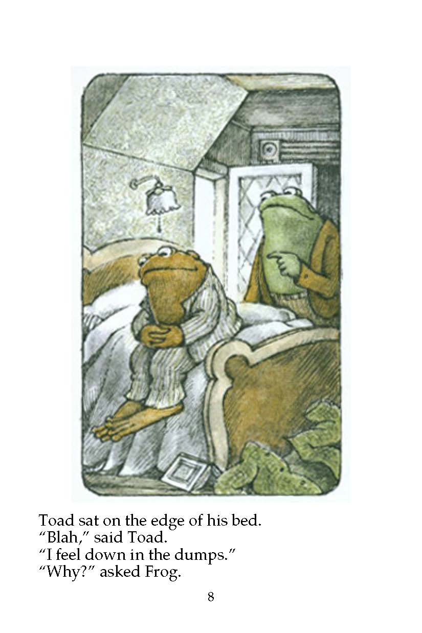 Frog and Toad by Arnold Lobel《青蛙和蟾蜍》讲述的是青蛙和蟾蜍的友情故事。他们放风筝,抵制诱惑的饼干,寻找丢失的纽扣。无论它们陷入了什么样的境况,有一件事是可以确定的:青蛙和蟾蜍会永远在一起。