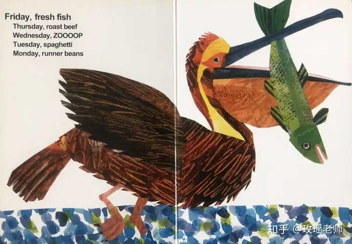 孩子3岁的时候,有一次我和他读Eric Carl的《Today is Monday》,里面画了一只鸟,这只鸟的喉囊巨大,可以将整条鱼收入囊中。我并不认识这种鸟类,随口说:这鸟我也不知道叫什么名称,等我改天查一查。